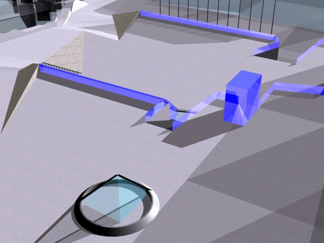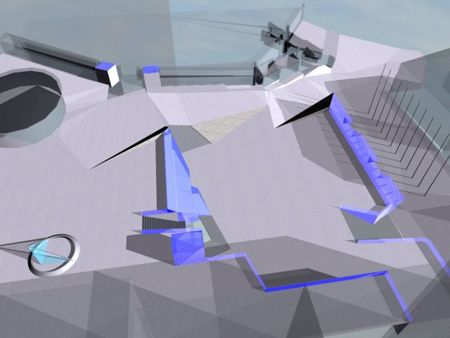 Der Entwurf sieht die Terrassierung in insgesamt 3 Ebenen vor, wobei in etwa halber Höhe des Niveauunterschiedes von ca. 10m ein großzügiges Zwischenniveau geschaffen wurde. Die obere Fläche wird in Verlängerung des oberen Platzniveaus weiter in den Platz geführt, im Unteren wird das Niveau der Gasse aufgenommen und um ca. 10 m verbreitert. Dadurch wird die Bespielbarkeit für Großevents - Papstbesuch - erst ermöglicht, ohne temporäre Bühnenelemente aufbringen zu müssen. Die fußläufige Verbindung der Ebenen erfolgt über Treppen und der an der Basilika hinorientierten Erschließungsrampe. In den den Platzflächen zugewandten Bruchkanten der Terrassen sind Einbauten für Shops und auf der oberen Ebene eine zentrale Tourismusinfo vorstellbar.12 Fahnenmasten auf der untersten Ebene fassen durch ihre Höhenentwicklung die einzelnen Terrassen wieder zusammen und sind von allen Punkten aus sichtbar.